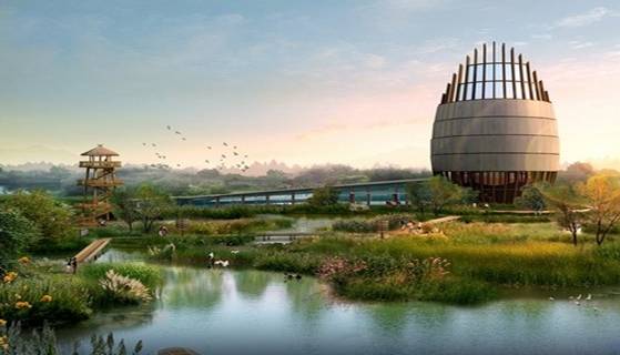 以項目地山、水、林、田、觀、灘、村七大核心資源為基礎;以森林、花卉、濕