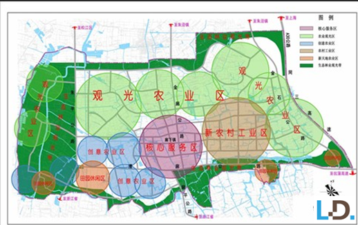 “五區(qū)”:核心服務(wù)區(qū):廊下鎮(zhèn)區(qū);創(chuàng)意農(nóng)業(yè)區(qū):科學(xué)農(nóng)業(yè)示范區(qū),包括無農(nóng)藥蔬菜基地、現(xiàn)代種子 種苗基地、玉環(huán)靈芝配置基地等;