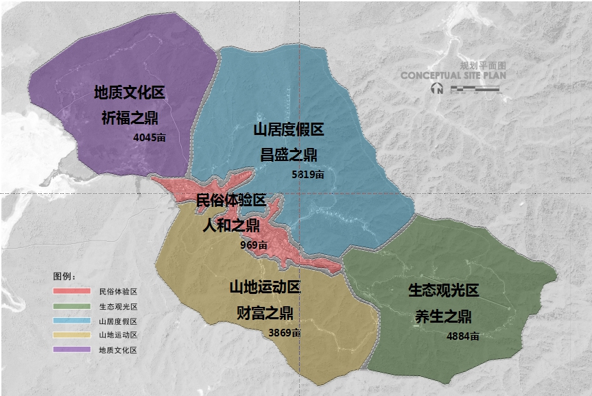 價值創新:以保持五鼎山優良的生態環境、原味的鄉村氛圍為前提,以豐富、高品質的“山、水、林、石” 資源為依托,以市場需求為導向,以項目建設為抓手,通過豐富旅游項目活動、增加文化體驗內容、完善基礎服務設施、優化旅游管理運營等,打造生態觀光、文化體驗、休閑避暑、養生度假、科普運動等深度融合的規模化、集約化、綜合型原 生態輕雅野奢養生度假森林 。打造開放式旅游景區,依托昆明少有的山水奇景、優良生態,通過山林生態建設、全域景觀優化、多元文 化注入等,構成:文化森林養生旅游目的地 。