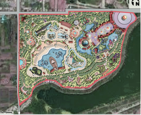 根據項目地的場地情況、開發現狀、發展思路等,確定功能分區為:綜合服務區——仙聚蓬萊、親子娛樂體驗區——八寶樂園、水上娛樂區——八仙戲水、陸地冒險區——龍宮歷險。