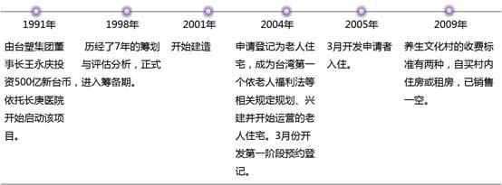 項(xiàng)目源起:臺(tái)灣“經(jīng)營(yíng)之神”王永慶為紀(jì)念其父親王長(zhǎng)庚所創(chuàng)辦長(zhǎng)庚醫(yī)院。2004年,依托長(zhǎng)庚醫(yī)院的醫(yī)療資源,臺(tái)塑集團(tuán)建立了長(zhǎng)庚養(yǎng)生文化村,成為面向“銀發(fā)一族”的集養(yǎng)生、醫(yī)療一體化經(jīng)營(yíng)的項(xiàng)目。