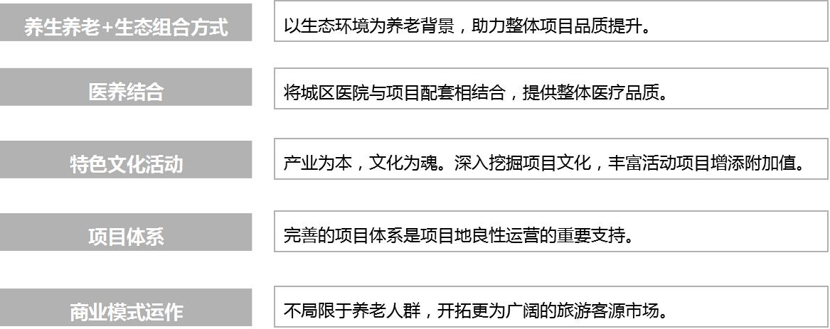 養(yǎng)生養(yǎng)老項(xiàng)目成功開(kāi)發(fā)的關(guān)鍵因素主要包括五個(gè)方面: