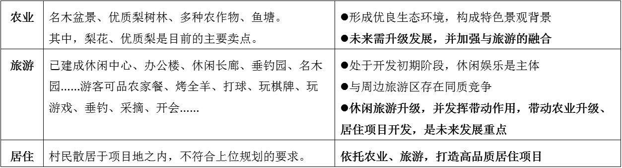 “農(nóng)業(yè)”、“旅游”發(fā)展已具備一定基礎(chǔ)。但有待提升,并帶動(dòng)“居住”發(fā)展。