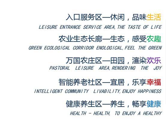 打造理想化、品質(zhì)化、綜合化的能夠盡享田園生活、暢享養(yǎng)老生活、認(rèn)知農(nóng)業(yè)創(chuàng)意、體驗(yàn)休閑樂(lè)趣、品味多元文化、快樂(lè)養(yǎng)生養(yǎng)心……的