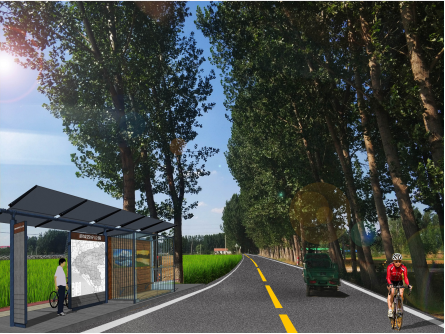 農(nóng)村公交站點設(shè)置:設(shè)置間距為1km,如與村口、道口可考慮實時縮短或增加距離 ;車站滿足候車功能同時可融合互聯(lián)網(wǎng)+的相關(guān)服務(wù)信息,例如二維碼查詢車次運營情況及篩選去周邊區(qū)域車次。